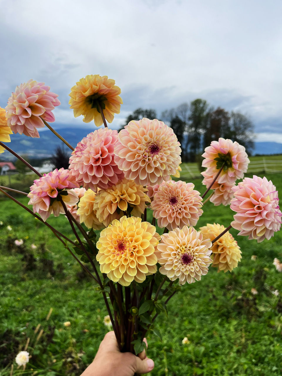 Wir bauen verschiedene besondere Sorten an, die du nicht in jedem Blumenladen findest. Wir haben weiße, gelbe, creme- und lachsfarbene, gefüllte, mehrblütige und stark duftende Sorten. Nur die klassisch gelben findest du bei uns nicht.